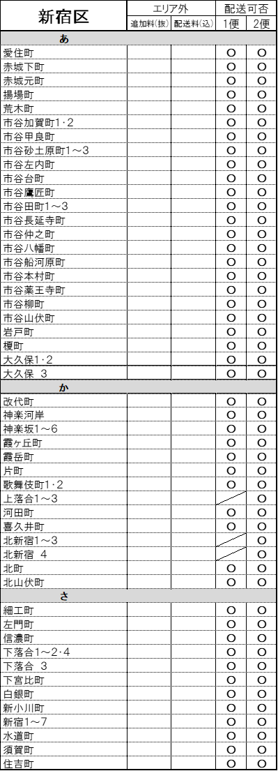東京23区内への配送区分について