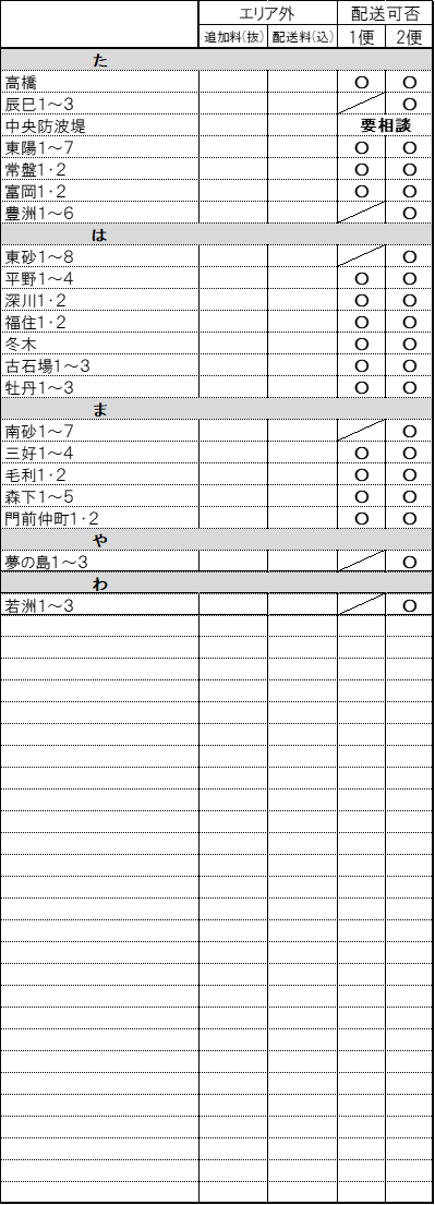 下記に記載のないエリアは配送対象外となります